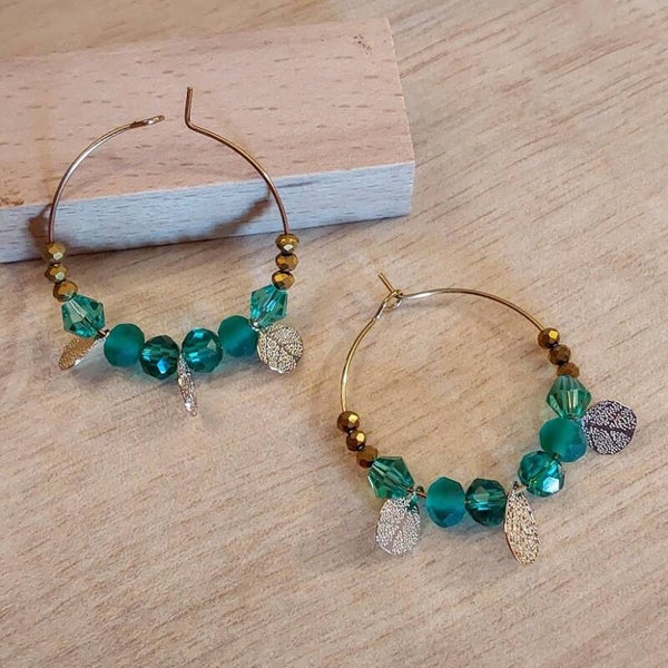 "Liora", prénom d’origine hébraïque signifiant "ma lumière", incarne l’éclat doré d’un matin paisible, où la nature s’éveille en douceur. Ces boucles créoles dorées célèbrent la légèreté, la symétrie, et la poésie végétale, dans une danse de perles et de feuilles.